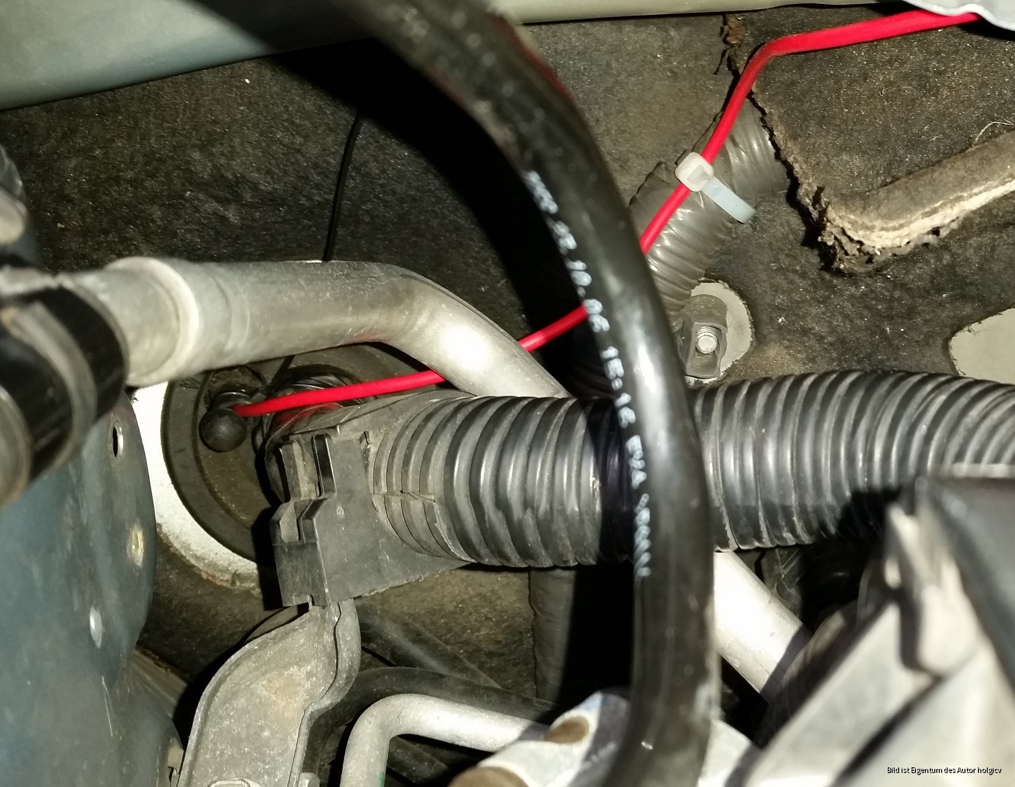 An dieser Stelle kannst du aber egal mit welchem Kabel bequem vom Motorraum in den Innenraum.
